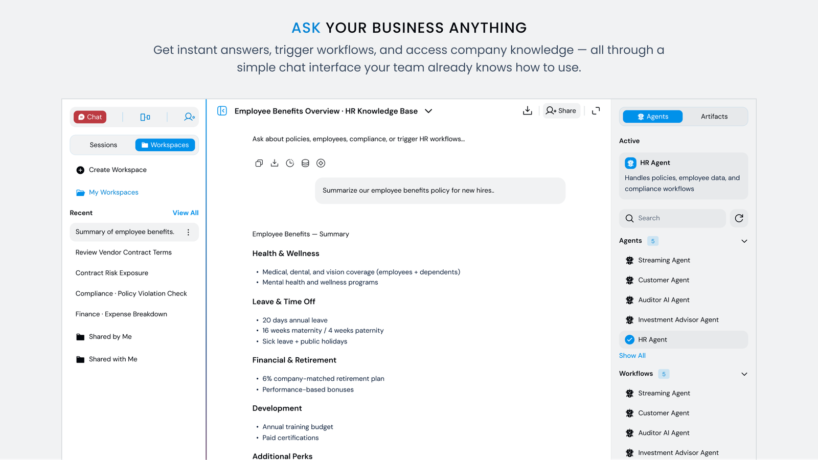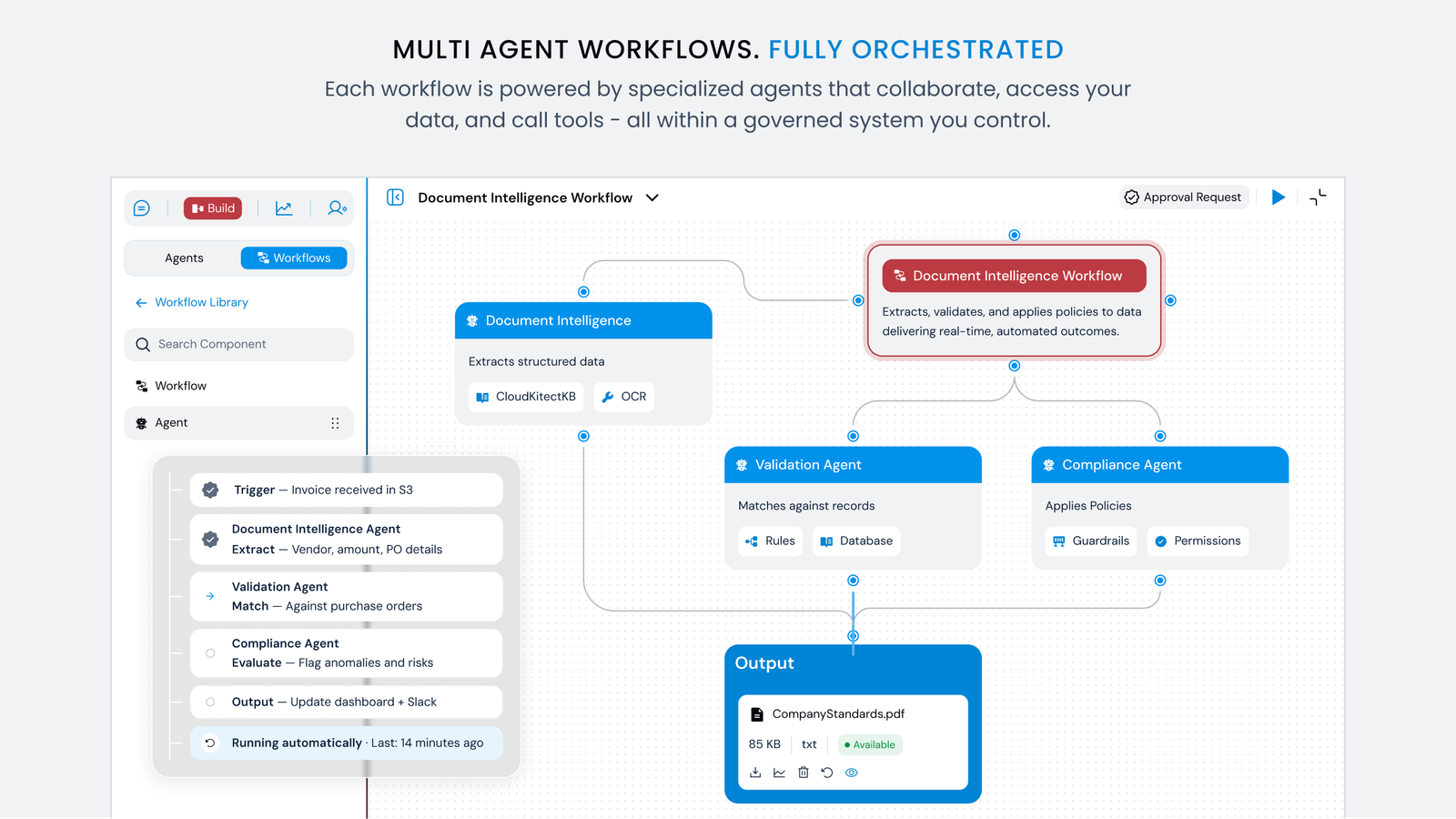 Subject matter experts can create and customize AI agents through an intuitive no-code interface, while developers have the freedom to extend and integrate. This means faster development and deployment of AI-driven workflows, without requiring a large team of AI engineers.