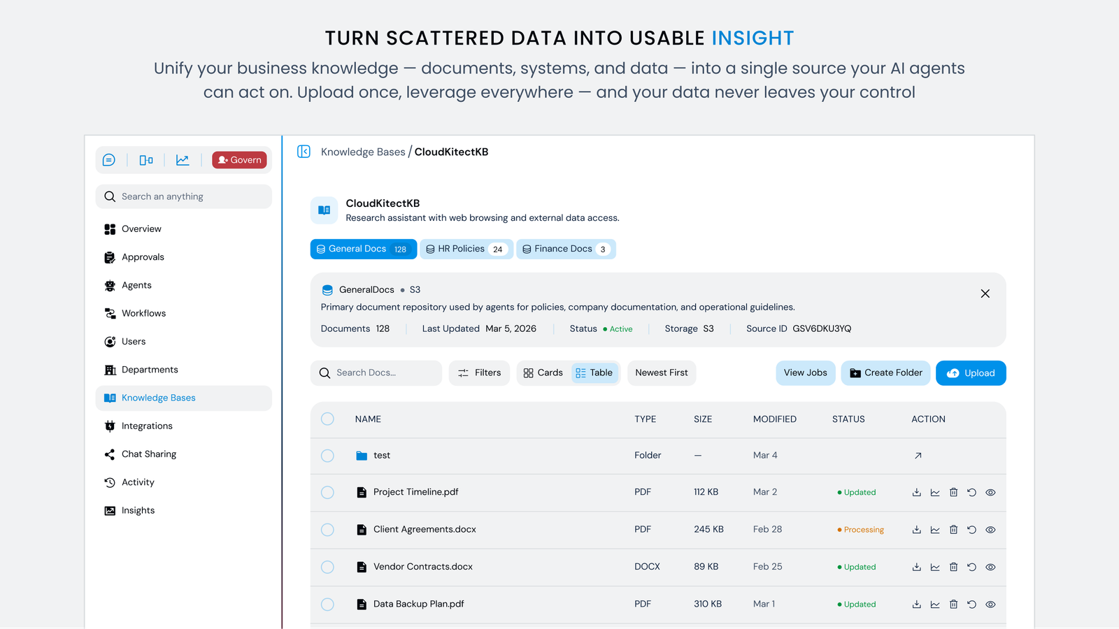 CloudKitect’s solution includes an AI Command Center—your mission control for AI on AWS. This single, secure hub allows you to create, deploy, and manage AI agents while controlling data access, enforcing policies, applying guardrails, and monitoring performance in real time. We handle the infrastructure and governance, so you can focus entirely on achieving business results.
