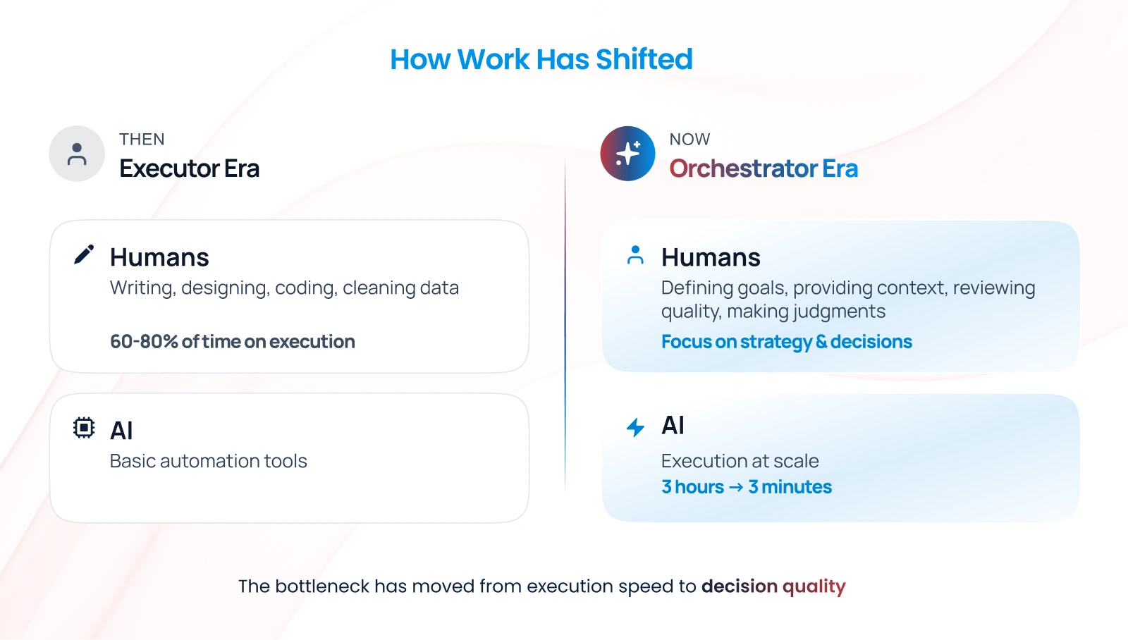 AI hasn’t just automated some tasks—it’s fundamentally redistributed the execution burden. Modern AI tools can now: