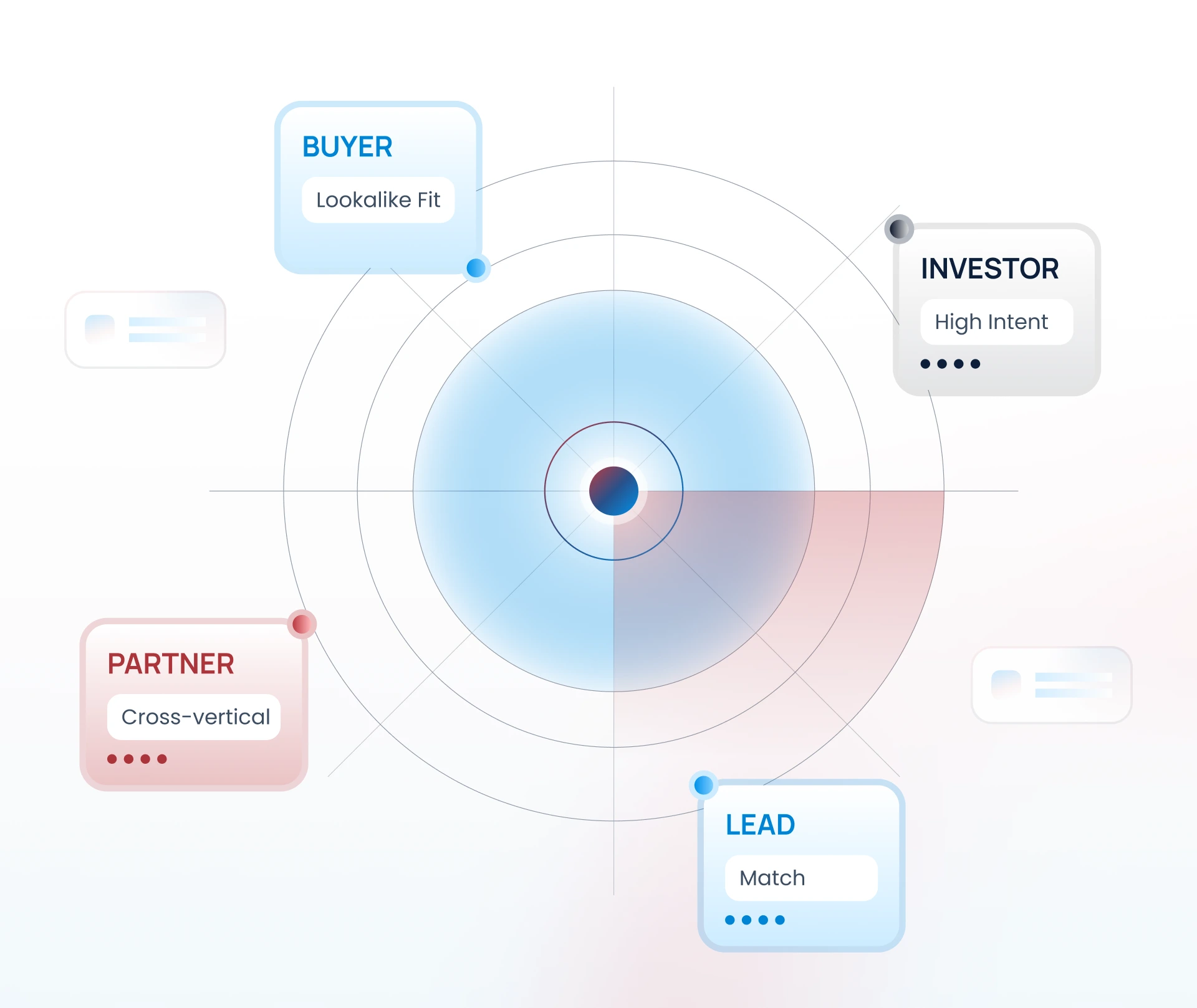 AI prospecting radar identifying lookalike buyers, high-intent investors, cross-vertical partners, and qualified leads.